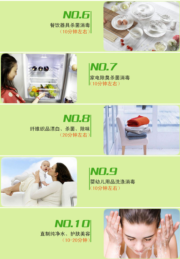 9、促進(jìn)健康:臭氧可快速還原氧氣,增加室內(nèi)氧氣濃度,促進(jìn)人體細(xì)胞活化、改善血液循環(huán)和新陳代謝,預(yù)防疾病發(fā)生。